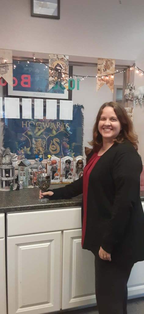 Hufflepuff House was the overall winner this year! Denise Adams represented Hufflepuff, so she won the House Cup. We look forward to next year’s Hogwart’s House Pride Month.